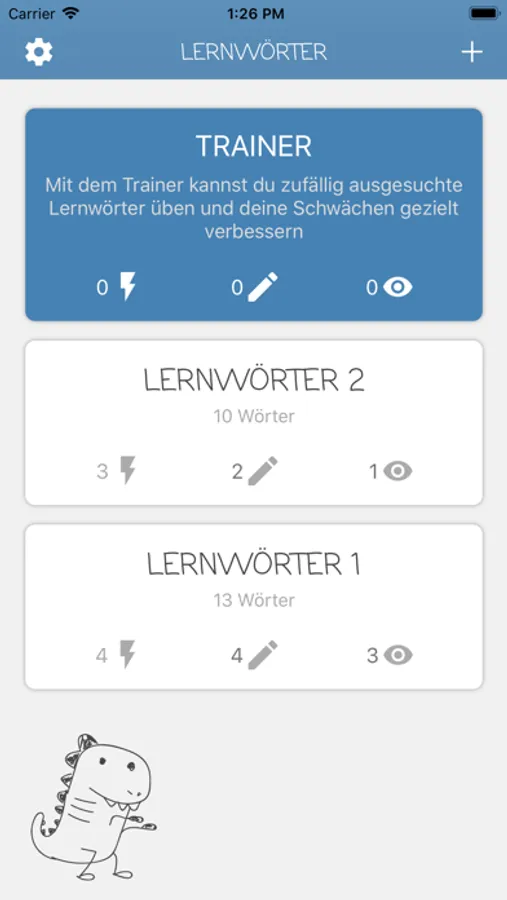 Eine weitere Herausforderung zur Vertiefung von erworbenen Fähigkeiten und dem Ausfüllen von Lücken ist die Trainer-Funktion. Dieser greift Wörter aus allen Lerneinheiten auf und legt dabei besonderen Fokus auf Wörter, mit denen das Kind zuletzt Schwierigkeiten hatte.