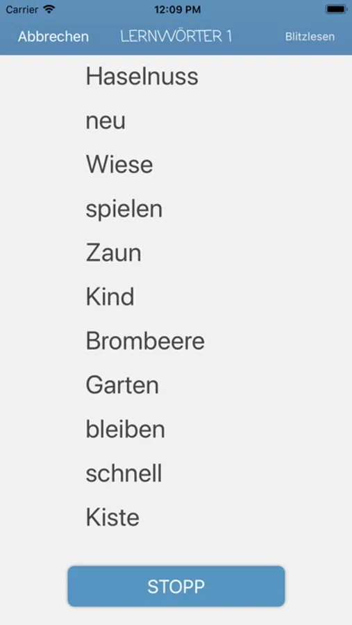 - Beim Blitzlesen sollen Lernwörter in zufälliger Reihenfolge schnell gelesen werden.