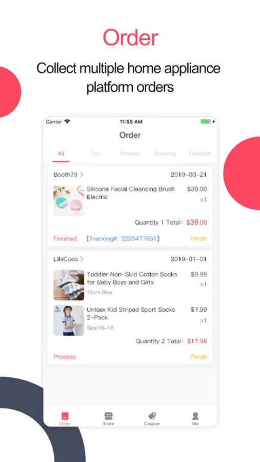 * Automatically trace your order and shopping behavior, and free you from numerous and disorganized shopping mails;