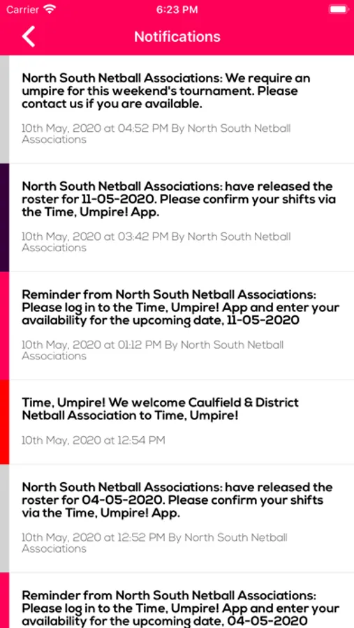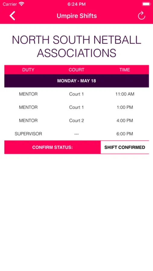 Umpires can confirm shifts, letting the Association know they have received and will be in attendance.