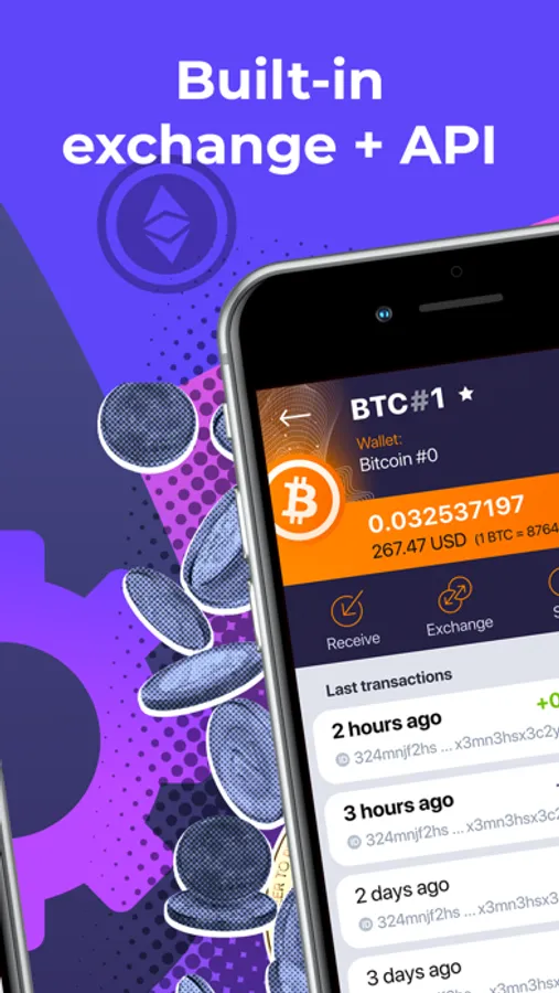 - Built-in exchange (BTC, ETH, LTC, DASH, ZEC, USDT (ERC20, TRC20))
