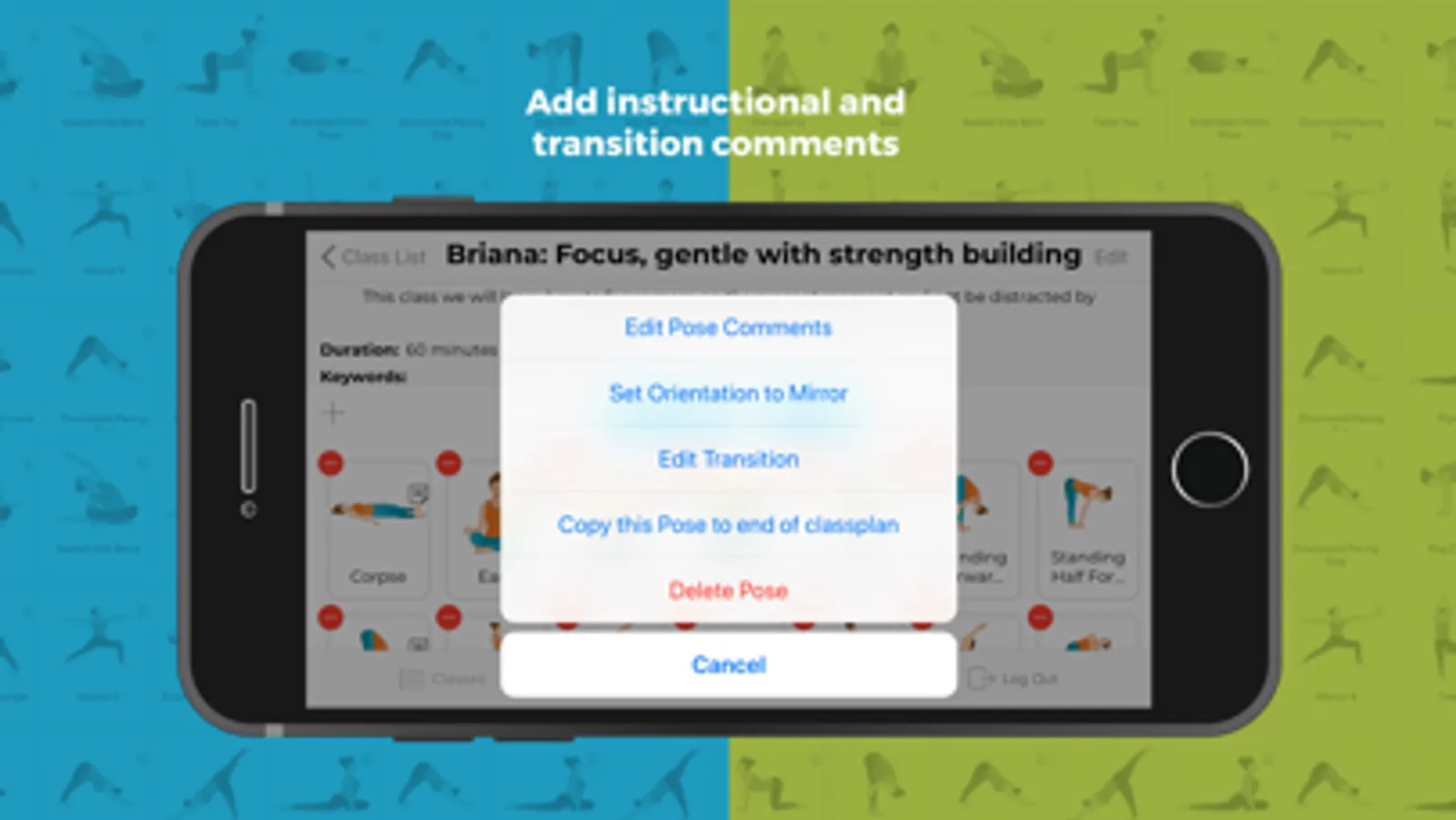This app is designed specifically for yoga teachers, not students. It is a tool that helps new and experienced teachers create and archive the sequence of poses used in a class.