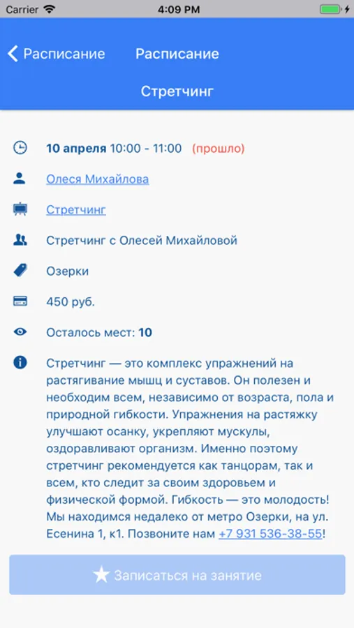 Наше приложение поможет вам быть в курсе актуального расписания, записываться на занятия в один клик, не пропускать самые свежие и вкусные акции и специальные предложения.