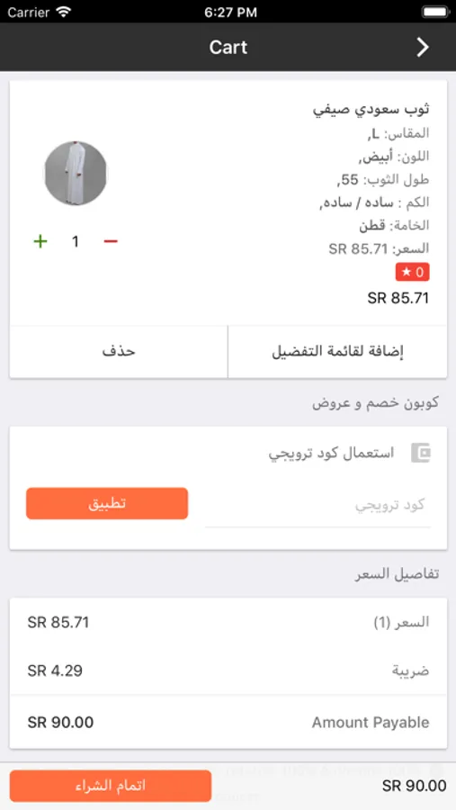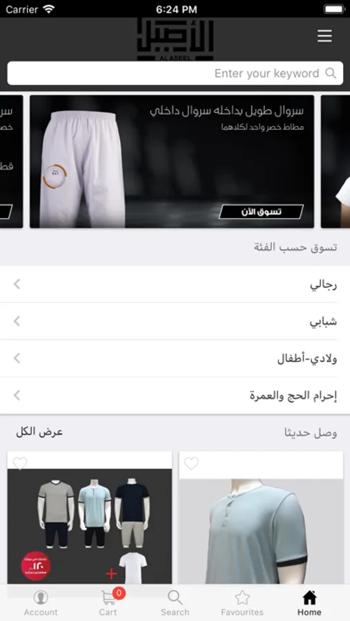التطبيق الأمثل لتغطية احتياجات الرجل، تطبيق الملابس الرجالية الجاهزة ( ثياب، ملابس داخلية، ثياب راحة، بجامات، احرام الحج والعمرة، جوارب )