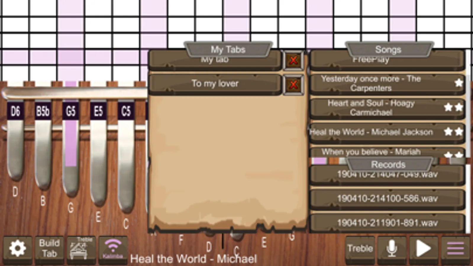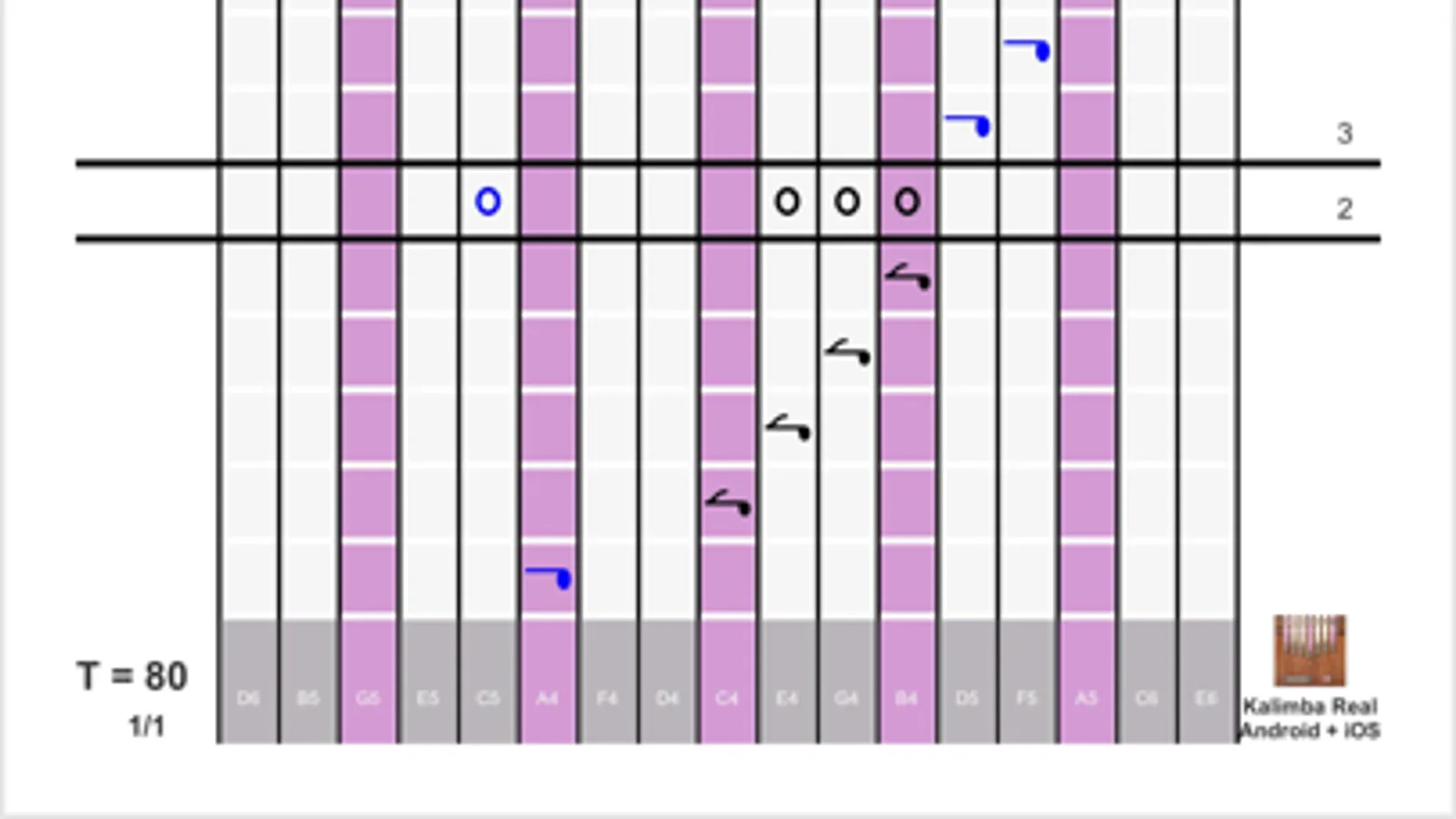 6 Kalimba Simulator (Thumb piano/ an African musical instrument) with real audio, with #, b, adjustable UI, changeable color style: