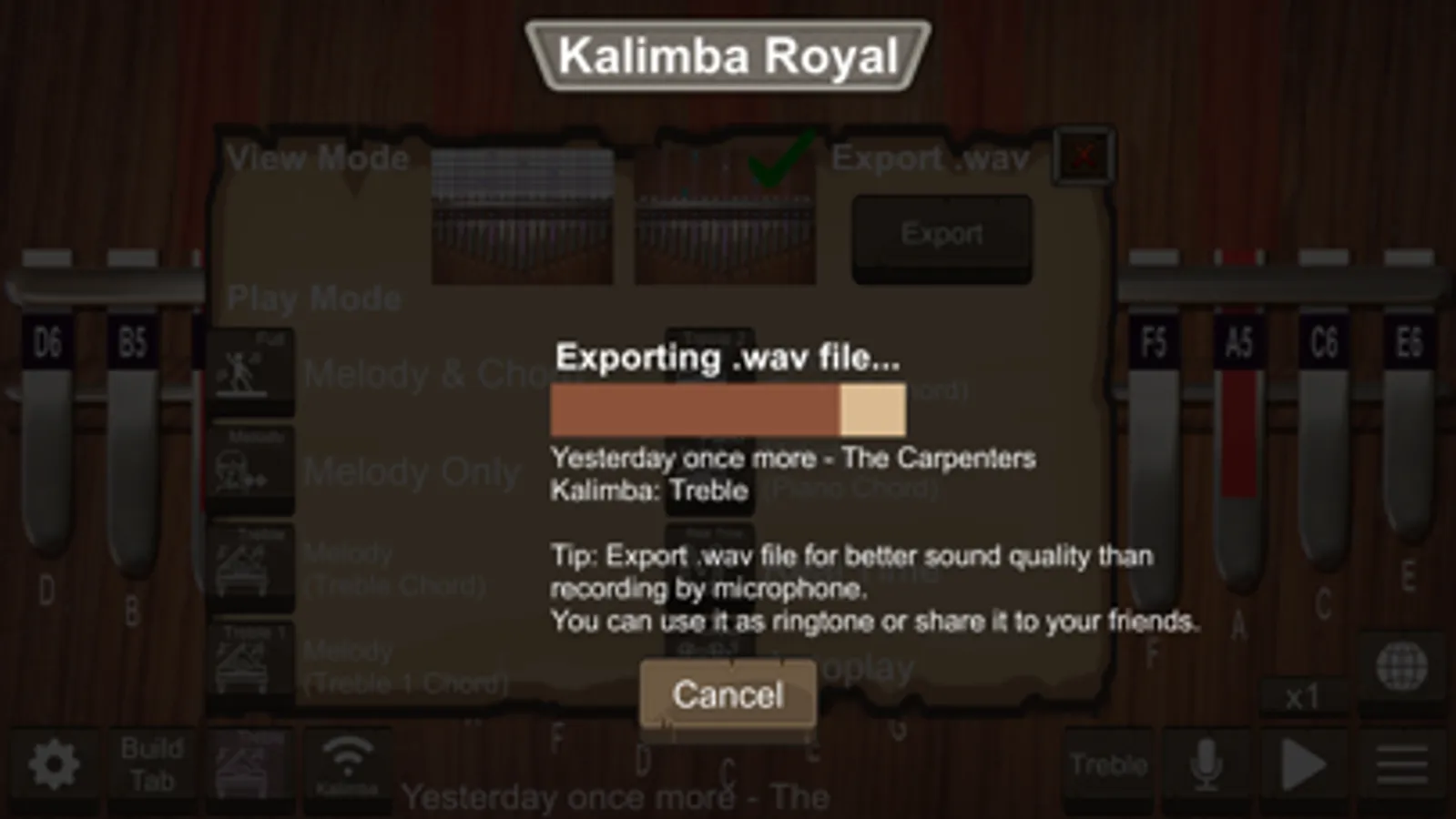 Export .wav file for better sound quality than recording by microphone. You can use it as ringtone or share it to your friends