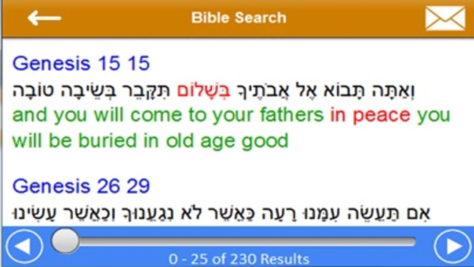 Fast search, multiple definition display. One click to show the actual page in the Bible that your word appears on for usage examples and further sources.