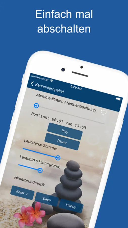 Unsere App wurde von Iris aus dem Biehlsoft-Team authentisch gesprochen, genauso wie in einem Entspannungskurs, wie beim Yoga, in Kursen des Autogenen Trainings, bzw. PR und der Meditation.