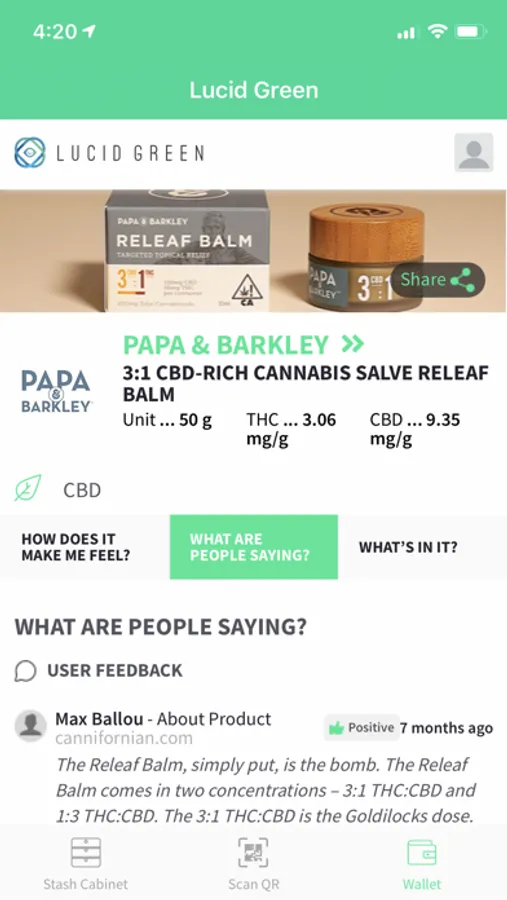 All your scanned products will be automatically saved in your very own Stash Cabinet. You can create favorite product lists for any occasion, share them with friends, and always remember your favorite products and your most effective dosage.