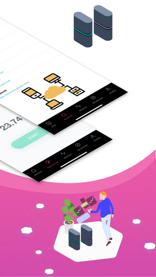 "Secured and private connection with VPN servers. Stay private and anonymous online"