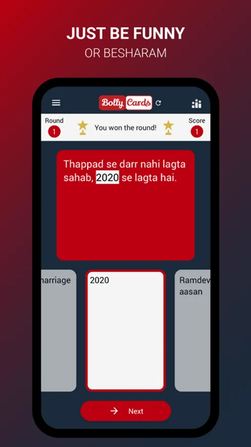 • Other players complete the dialogue by choosing a funny punchline out of 10 different options