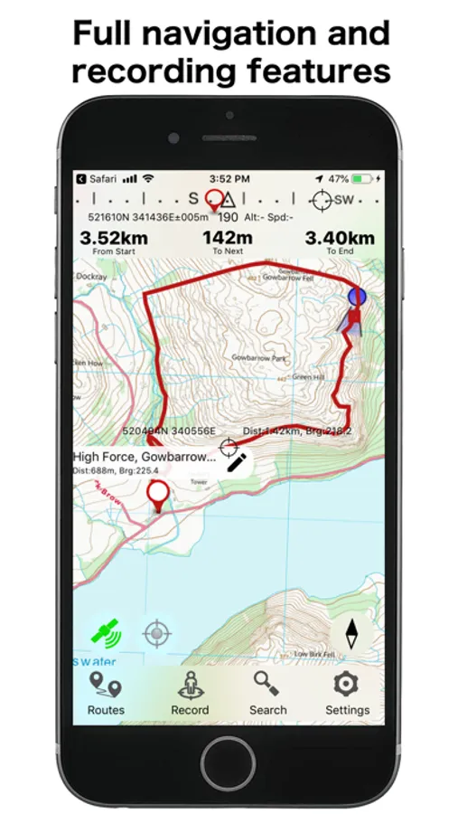 GBTopoMap includes full navigation functions including route planning, track recording, navigation to points or following routes, over 300,000 built in locations and landmarks. Directly import or share files from any source or channel of your choice. Maps are based on Ordnance Surveys VectorMap District and terrain data that gives 10 m contour intervals, combined with OpenStreetMap data on public access ways. The maps are fully installed on your device when you download and install the app from the App Store. Maps will update periodically after that using standard app version updates through the App Store.