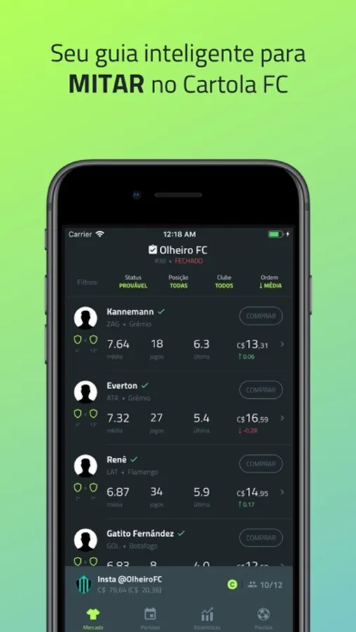 Atenção: este aplicativo não é filiado ao Cartola FC ou nenhuma entidade relacionada.