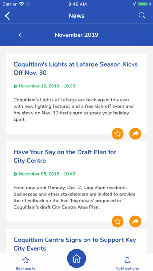 Connect with the City of Coquitlam anywhere, anytime with a few clicks on your phone. CoquitlamConnect allows you to check out City events, locate nearby facilities, catch up on news in your community and gain access to online services – all in one place. The app also allows users to customize the content they see on the app, by favouriting the news, events and content they are most interested in.
