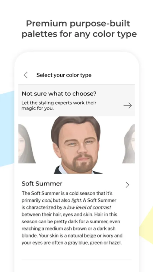 If you're uncertain about your color type, the app seamlessly integrates with colorwise.me, allowing you to determine your color type on your own or connect with recommended stylists for assistance.