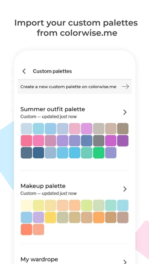 - Custom Palettes: Bring in your custom palettes from colorwise.me and social platforms.