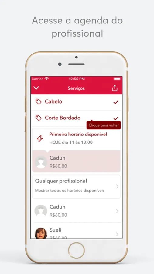 ► Marque horário com seu profissional favorito quando quiser, mesmo que você esteja no trabalho ou fora do horário comercial.