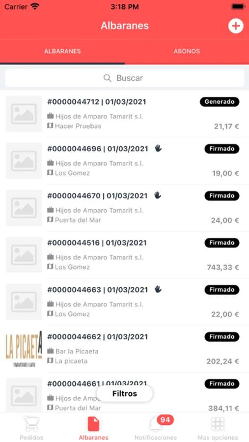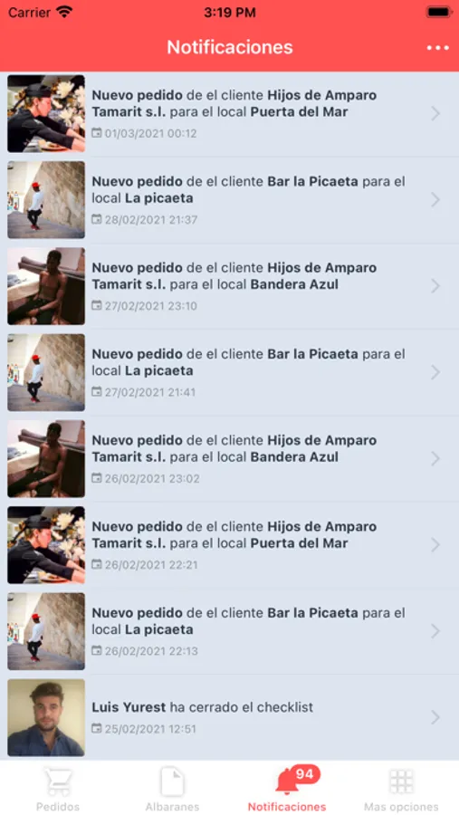 Aplicación para los proveedores de Yurest. Gestiona los Pedidos, Albaranes, Facturas, clientes ...