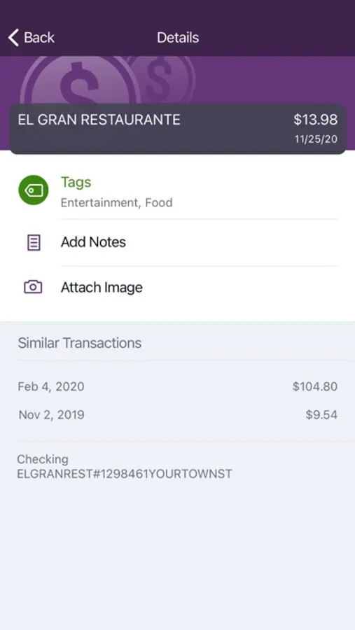 -Keep your transactions organized by allowing you to add tags, notes and photos of