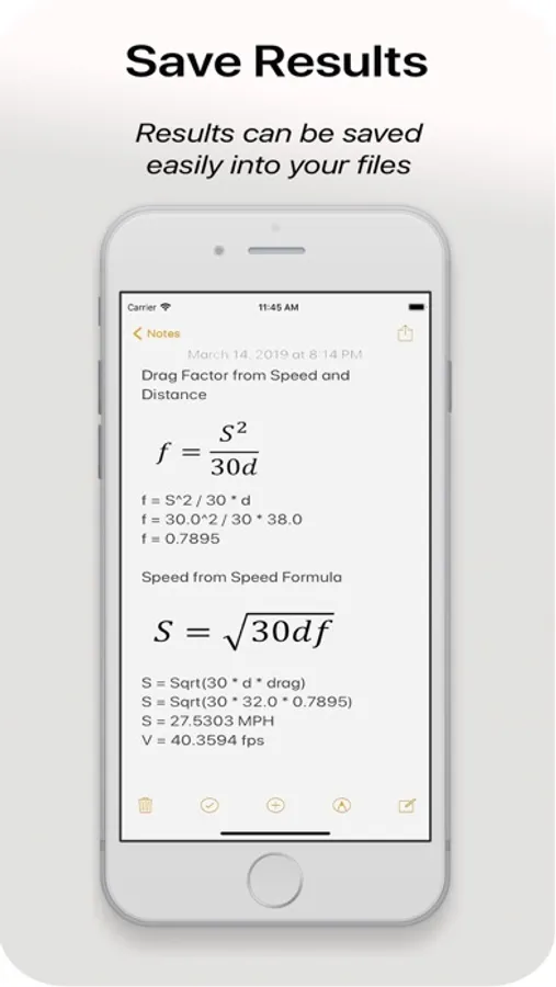 Crash Calc is a subscription based application that contains a collection of the most commonly used formulas for traffic accident reconstruction. Available in both US (Imperial) and Metric measurements. Easily calculate your results and save them for your files, all done right on your phone. Never have to wait to get back to the office again.