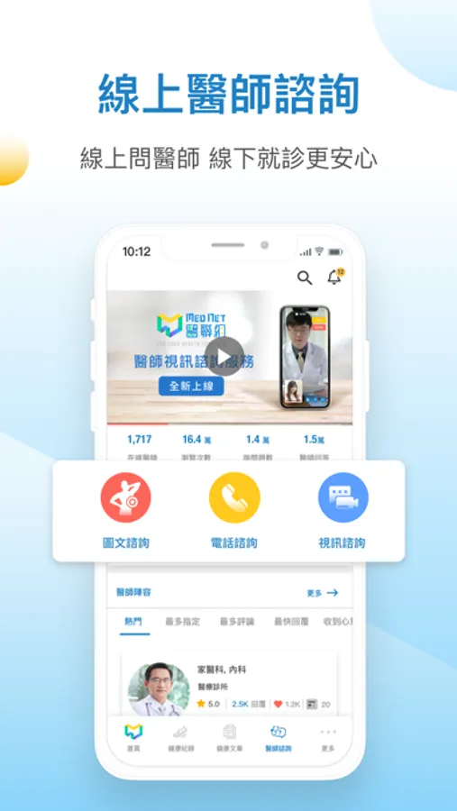 手機隨時隨地問醫師,36科台灣醫師提供線上諮詢服務,指定醫師更可獲得即時專業回覆,解除您的身體健康疑惑。