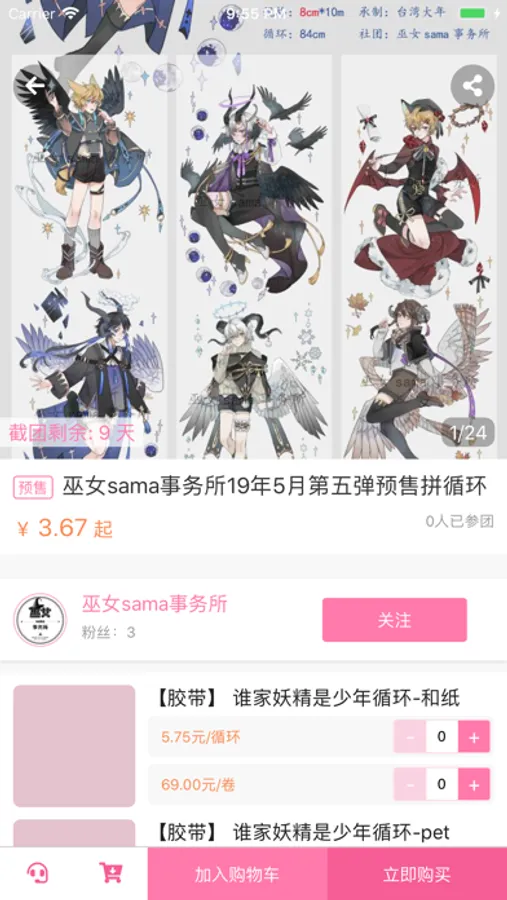 “约米米”拼团商城主要面向手账爱好者,通过预售拼团的形式售卖各品牌社团手账贴纸、胶带及相关手帐小装饰品。