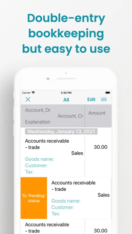 The ingenious design of the app reduces the amount of input, making journal entries extremely easy to make.