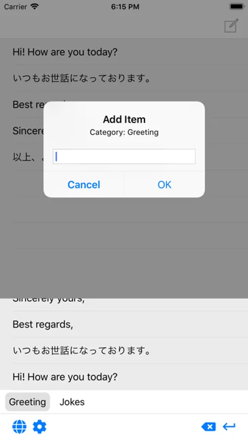 ・ Tap the globe button on the keyboard of the input screen to switch to DictionaryInput.