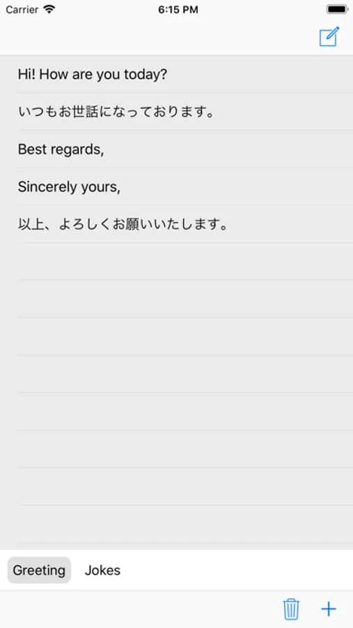 ・ Register fixed phrases in the currently selected category from the Edit mark at the top right of the screen.