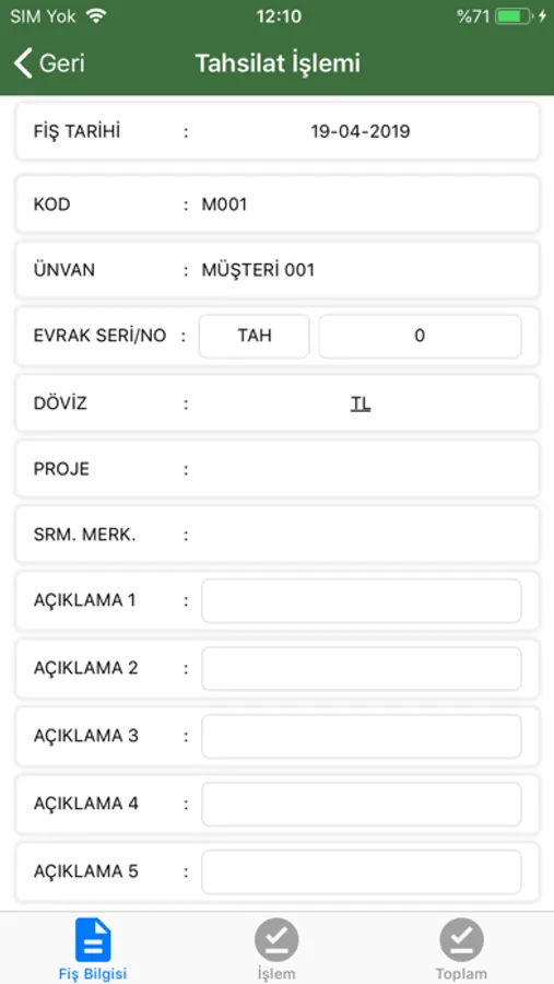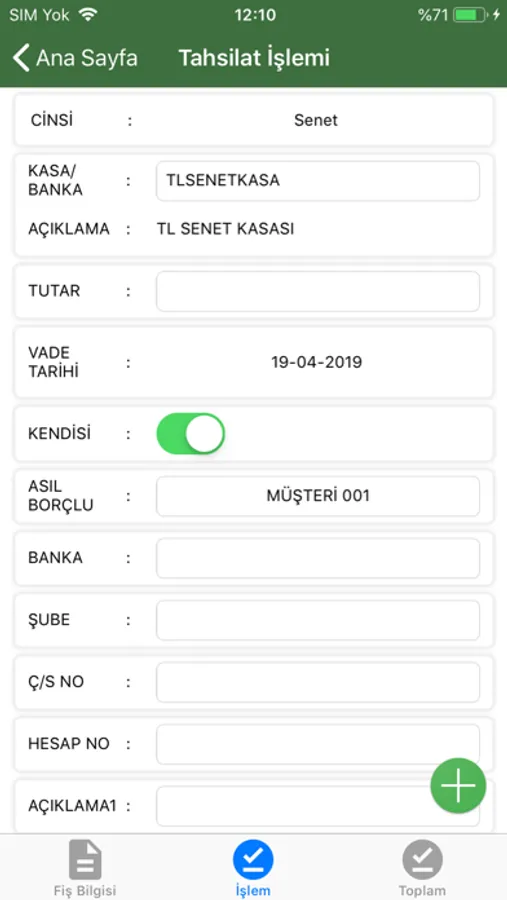 Nakit, çek, senet ve kredi kartı türlerinde tahsilat girişi yapılabilir. Çek tahsilatı yapılırken, çek numarası, borçlu bilgileri ve banka bilgileri girilebilir.Yapılan tahsilatlar ister mail olarak istenirse yazıcıdan döküm alınarak müşteriye ulaştırılabilir.