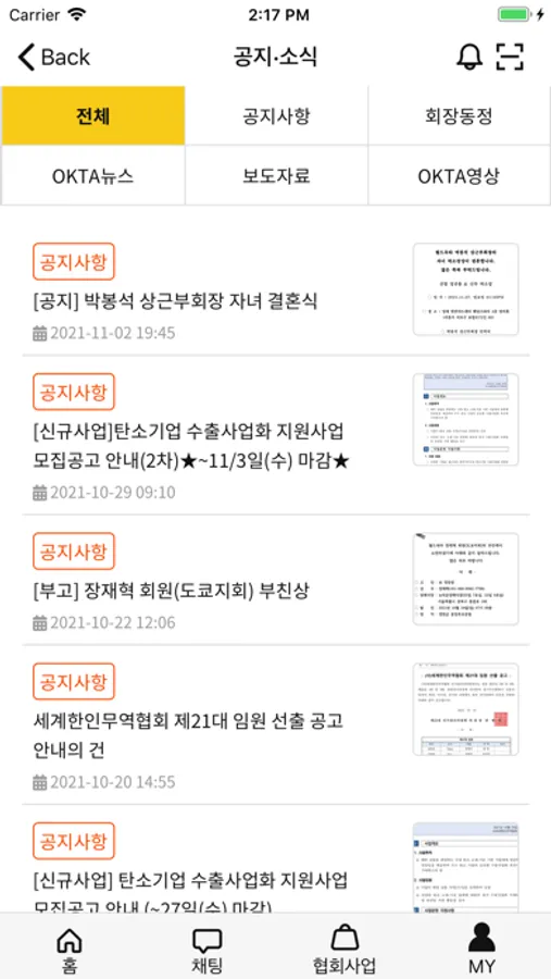 협회 공지사항 및 주요소식, 보도자료에 대한 정보를 확인할 수 있으며, 공지사항에 대해서는 푸시알림을 통해 실시간 알림을 받아볼 수 있습니다.