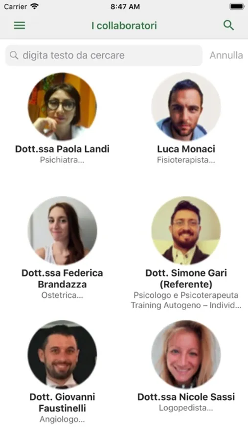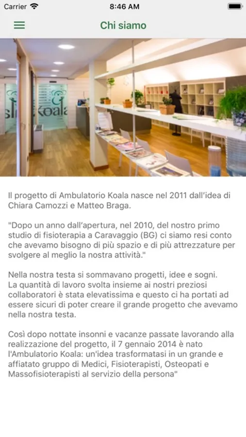 Scopri nella nostra app Koala chi sono i nostri collaboratori e i nostri servizi: le informazioni vengono aggiornate in tempo reale. Scegli il tuo specialista di riferimento e contattaci per fissare il tuo appuntamento.
