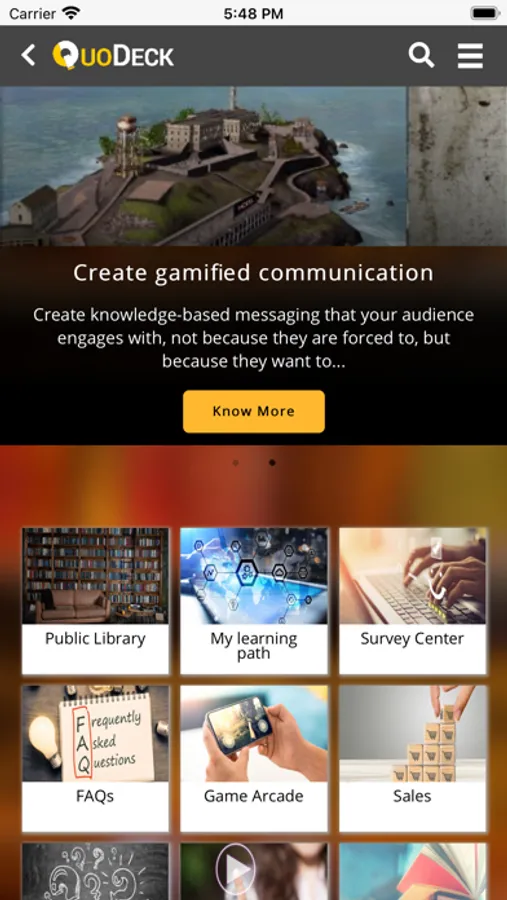 Explore QuoDeck is a game based learning management system. We believe learning is done best in bit sized modules, consumable by learners on mobile using the portrait view. Download this app to get a quick glimpse of how the learning app works and explore our gamification concepts and game based assessments.