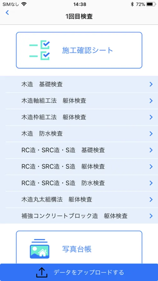 担当物件の取得、検査予約、検査業務(確認シートの作成)などが行えます。