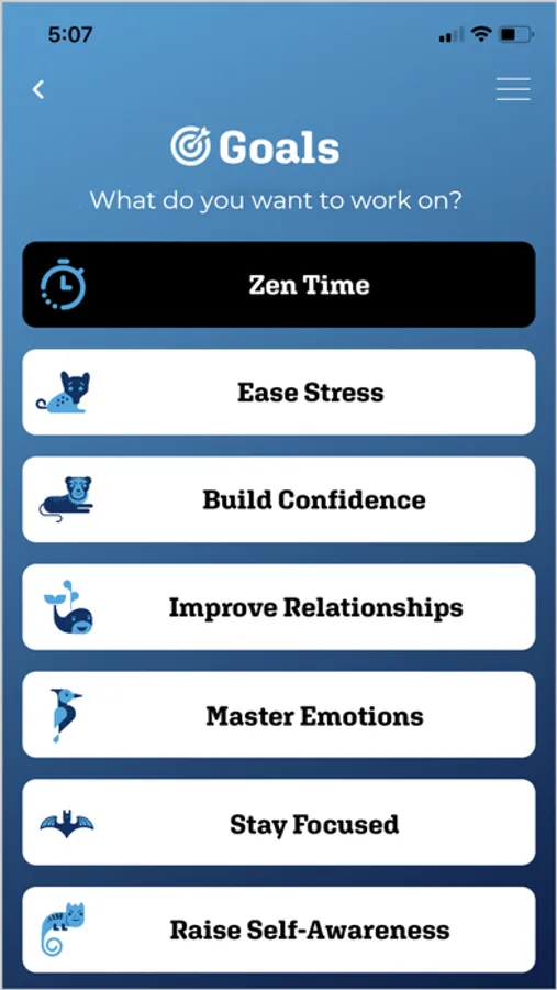 - A goal-setting section for focus areas such as Master Emotions, Improve Relationships, Build Confidence, and more...