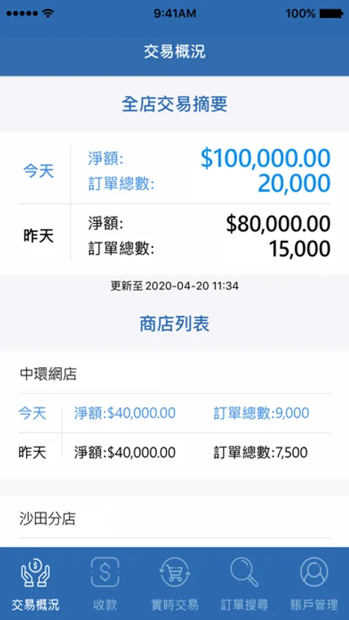 • 查閱各分店交易紀錄