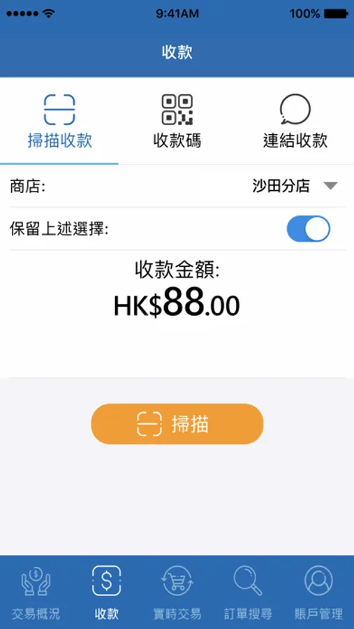 • 掃描顧客付款碼以進行收款