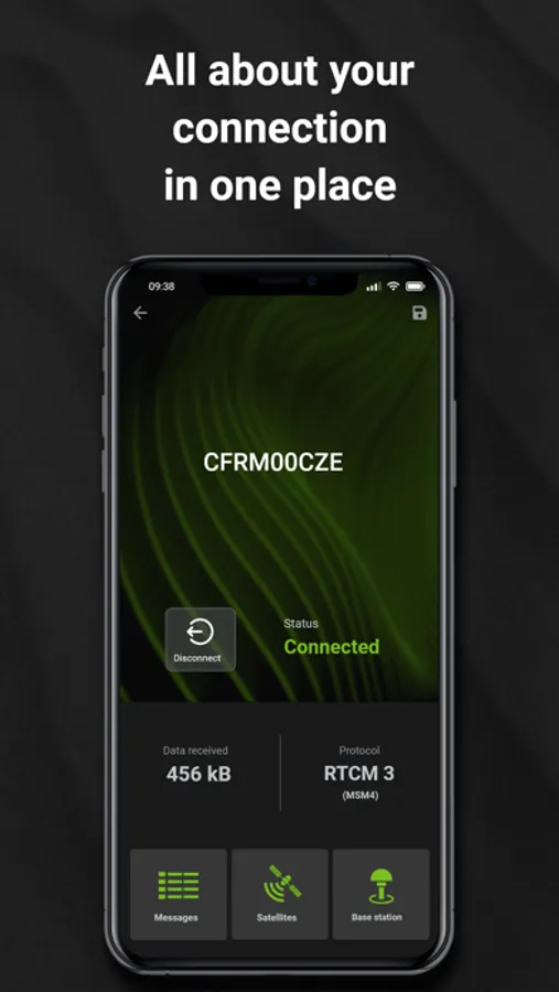 In the main screen you can define NTRIP connection parameters (host name, port, credentials), user position and select a mountpoint from the list provided by the NTRIP Caster, or set you own mountpoint. Once connected, you can look at the received RTCM messages and their statistics, see list of GNSS satellites and available signal frequencies, and to see the position and distance to the base station providing the corrections.