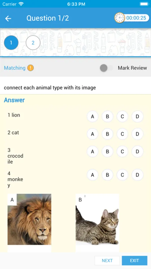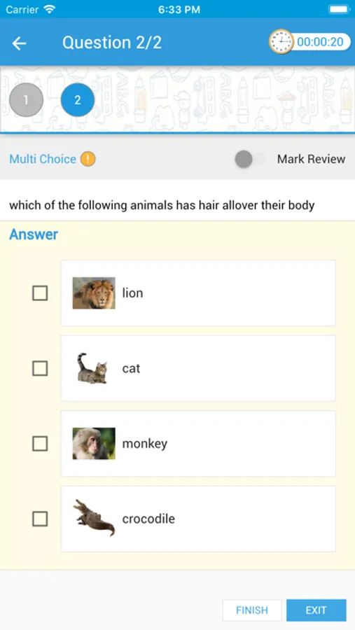 - They can also mark any questions for review if uncertain about the answer and the system will notify the student prior to finishing their exam.