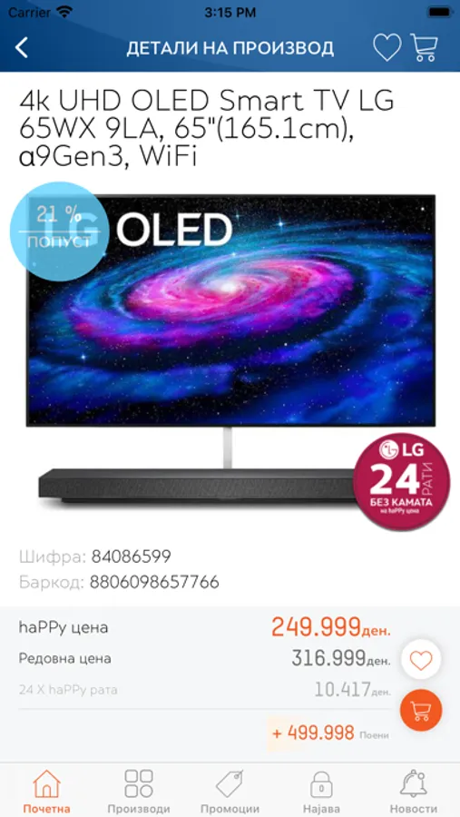 Придобивка плус и голем напредок во онлајн купувањето е овозможувањето на нашите купувачи кои се дел од лојалната програма “happy” да можат да ги користат бенефициите и онлајн. Тоа се: повластените “happy” цени (цените со попуст), добивање и користење на наградните поени и стекнувањето на нивоа на лојалност.