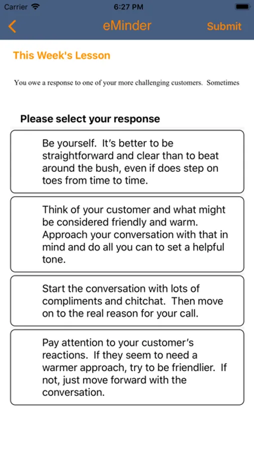 eMinder™ — offering a scenario-based lesson each week with immediate feedback to the user
