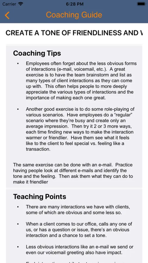Coaching Guide — to provide talking points and topics for discussion for each Fundamental