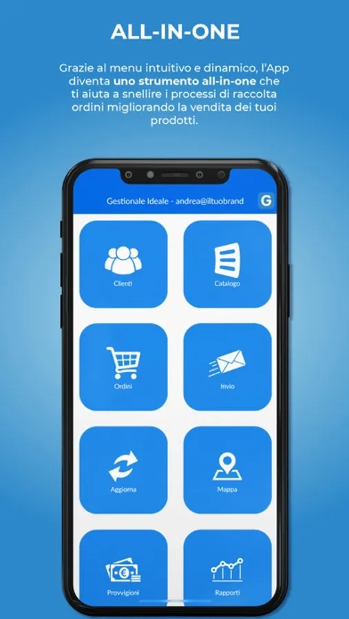 Gli agenti potranno consultare il catalogo, creare nuove anagrafiche e ordini lavorando anche offline. Inoltre potranno visualizzare i clienti sulla mappa, consultare l’estratto provvigionale e vedere gli estratti conto dei propri clienti.