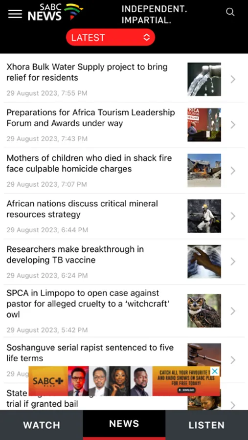 Stay connected with the latest and breaking stories, watch the SABC News channel along with clips and livestreams of all the big news events and listen to all the SABC radio stations live, including podcasts, and much more.