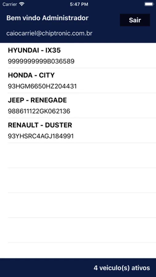 Aplicativo oferece informações sobre o veículos que possuem nossos equipamentos conectados!