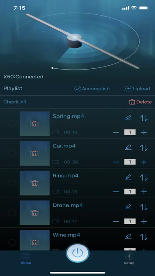 2. Upload video, edit and delete video, adjust play mode, brightness of the device, etc.