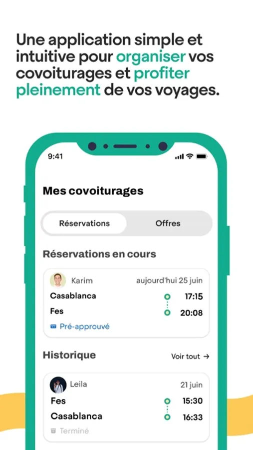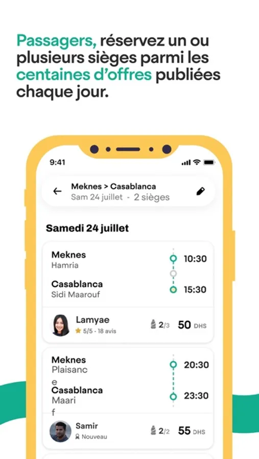 Découvrez la première et la plus grande communauté de covoiturage au Maroc, et utilisez le moyen de transport de demain ! Transformez-vous en copilote et partez au plus près de votre adresse de départ. Et si c’est vous qui conduisez, préparez-vous à réaliser de sacrées économies et rencontres.