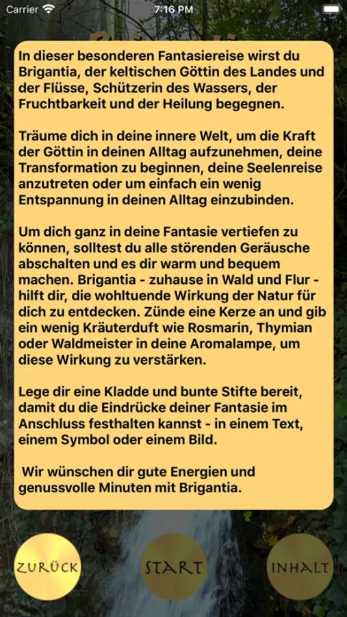 Du möchtest dich durch eine ausführliche Reise führen lassen? In unserer Fantasiereise zum Wohlfühlen triffst du eine Göttin. Träume dich in deine innere Welt, um die Kraft der Göttin in deinen Alltag aufzunehmen, deine Transformation zu beginnen, deine Seelenreise anzutreten oder um einfach ein wenig Entspannung in deinen Alltag zu integrieren.