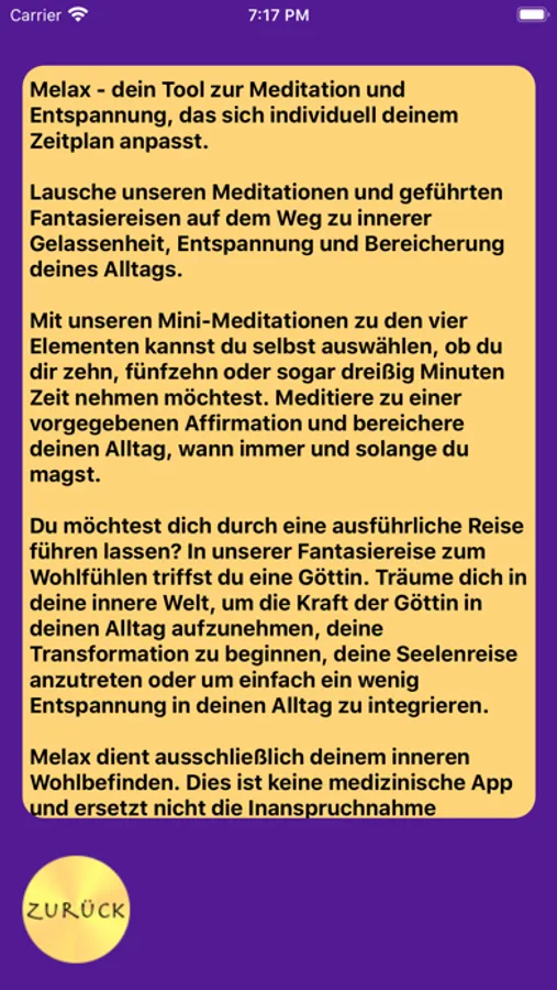 Wir möchten dich unterstützen und mit unseren Texten bereichern. Deshalb sind unsere Mini-Meditationen und eine Fantasiereise kostenfrei erhältlich. Damit wir weiterhin unsere wunderbaren Geschichten mit dir teilen können, bieten wir weitere Fantasiereisen über einen InApp-Kauf an. Wir danken dir für deinen Beitrag und freuen uns, dir schöne Minuten zu schenken. Deine Anregungen und Wünsche sind jederzeit sehr willkommen.