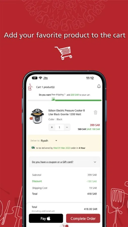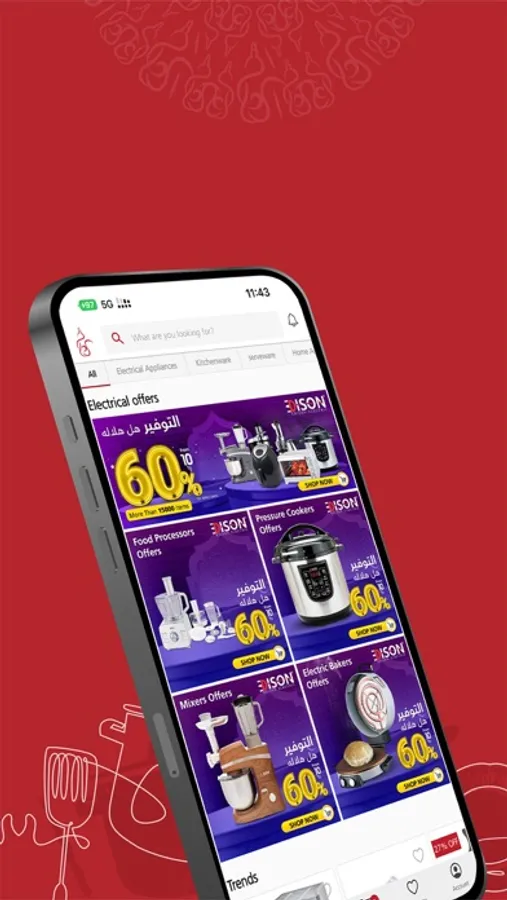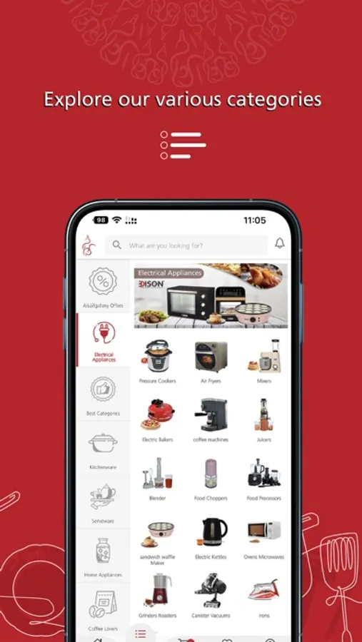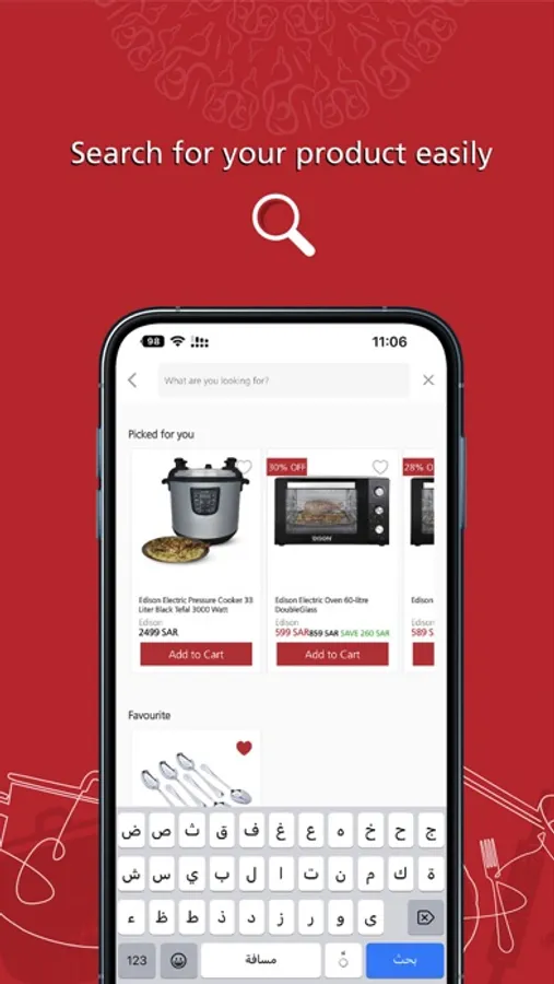 · Appliances: Pressure cookers, Airfryers, mixers, and ovens from Saudi Arabia’s top brand Edison and other high-quality international brands.